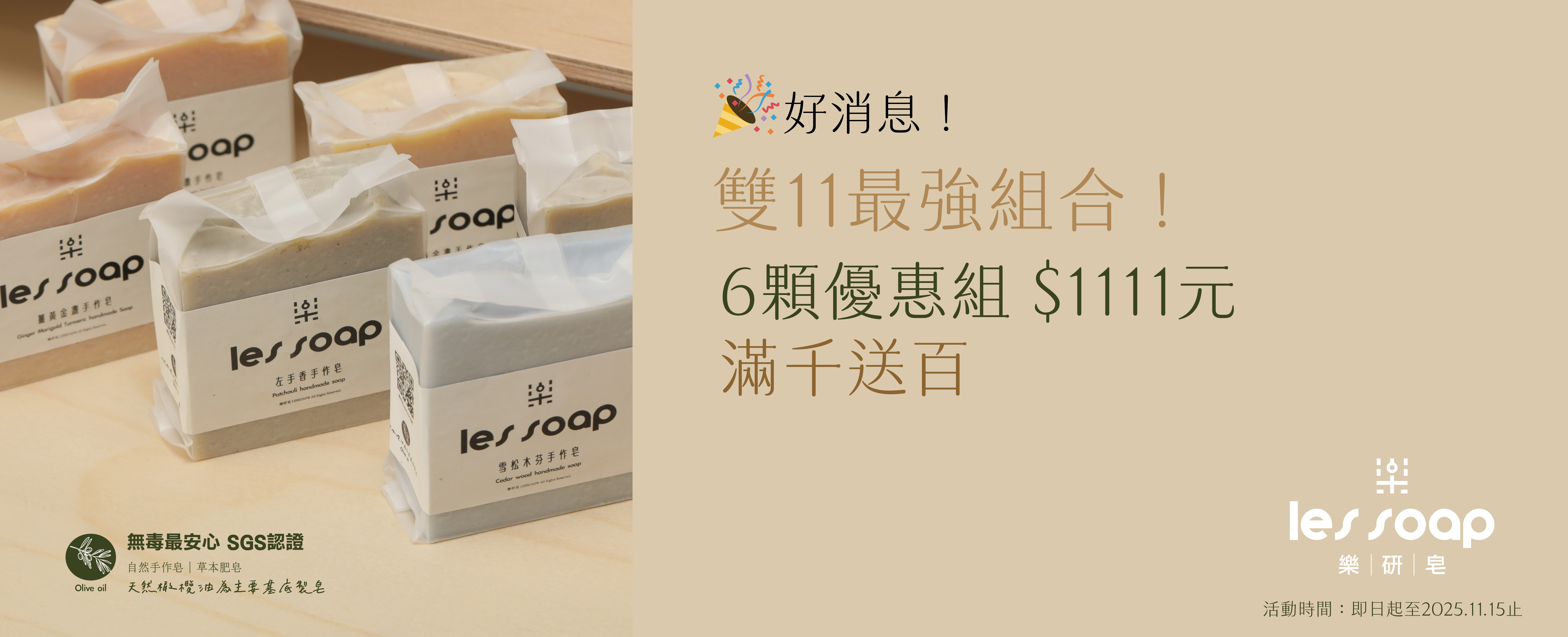 🎉好消息!雙11最強組合!11.11 滿千送百 樂研皂的朋友們,我們有一個令人振奮的好消息要分享!雙11最強組合!買6顆要1,111,滿10顆優惠組88折,囤貨最佳時機!能湊就湊! 雙11最強組合!自由選|方塊簡約皂系列-6顆優惠組 $1111元滿千免運!! 滿千免運,買得越多越划算! 顆開僅限登入會員參加 各會員使用次數限制 1 次 活動至 2025/11/15 截止 🎁手工皂優惠組數量有限,送完為止!這是支持環保、選擇天然產品的絕佳機會,讓我們一起為地球盡一份心力,享受健康與...Read more -
